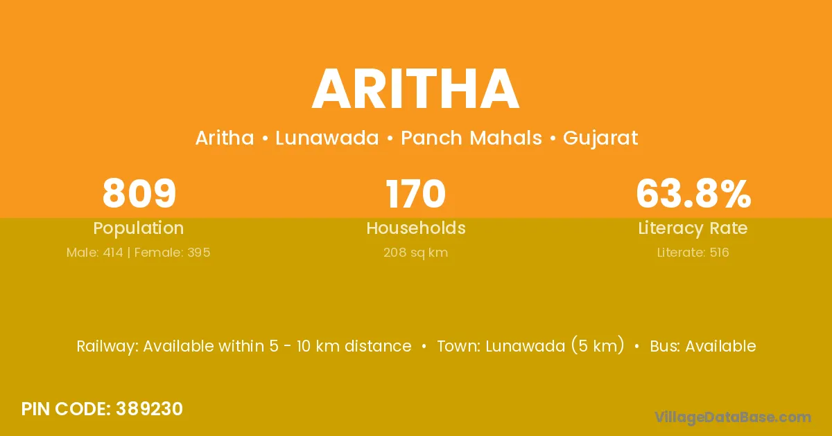 Bodeli (8 km) is the nearest town to Aritha village for major economic activities and is located approximately 8 km away.