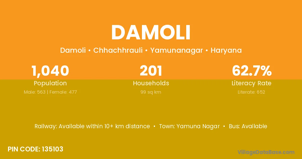 Dabhoi (7 km) is the nearest town to Damoli village for major economic activities and is located approximately 7 km away.