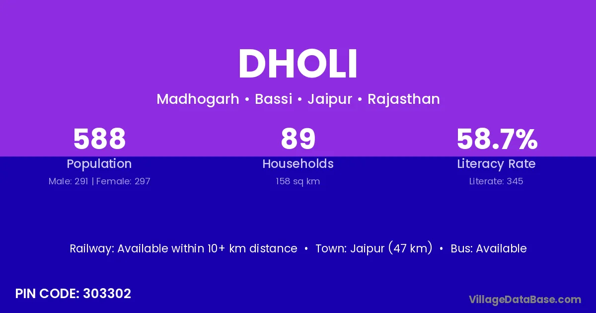 Dholi village has a total population of 1,269 people, of which 679 are males and 590 are females.