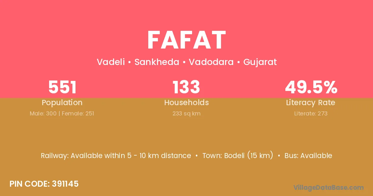 According to Census 2011 information, the village code of Fafat village is 391145.
