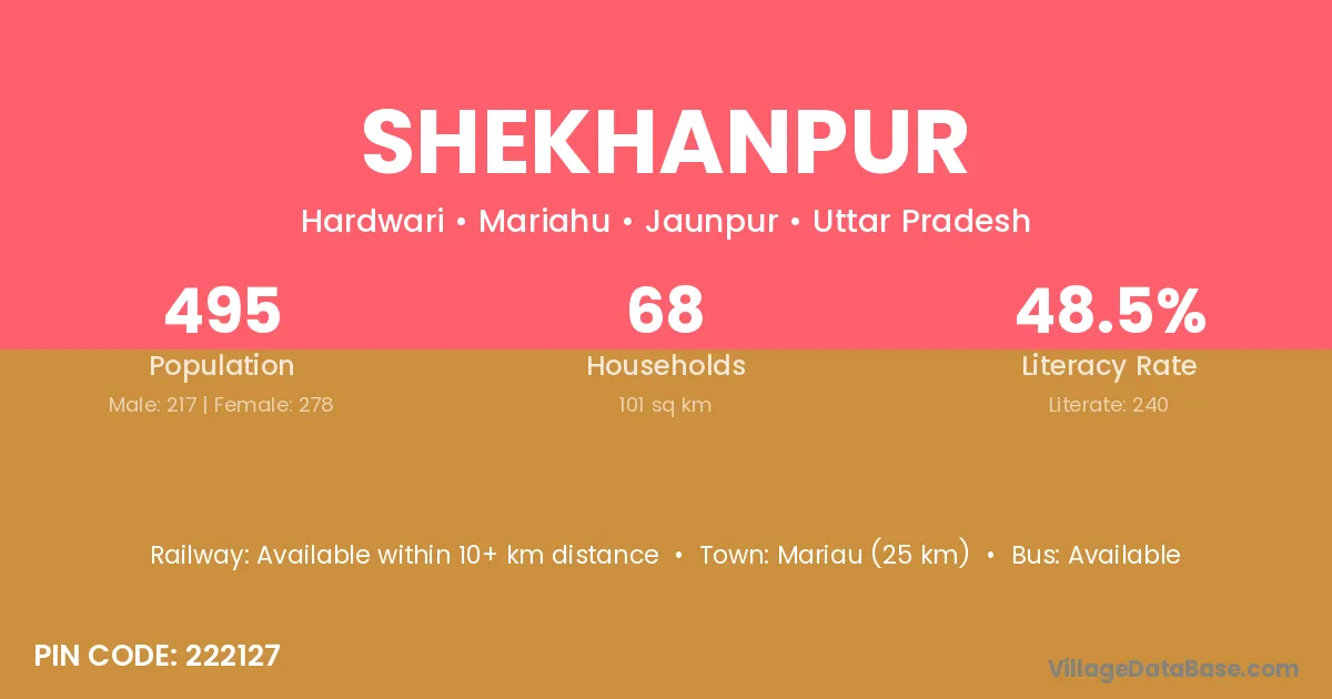 Shekhanpur village has a total population of 101 people, of which 58 are males and 43 are females.
