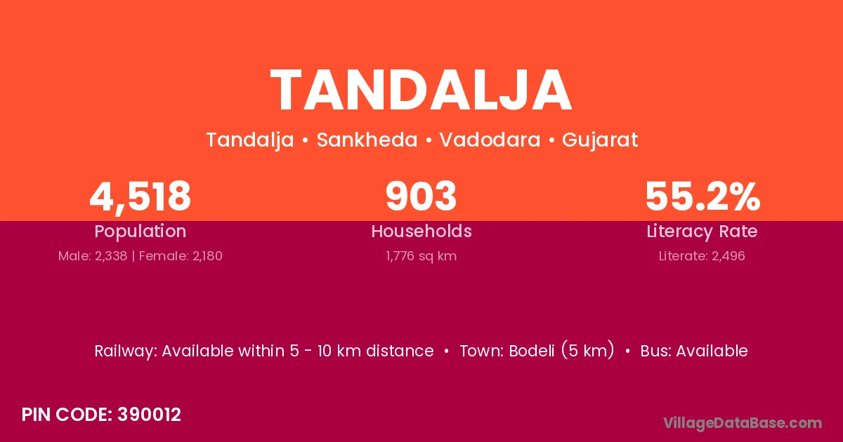 According to Census 2011 information, the village code of Tandalja village is 390012.