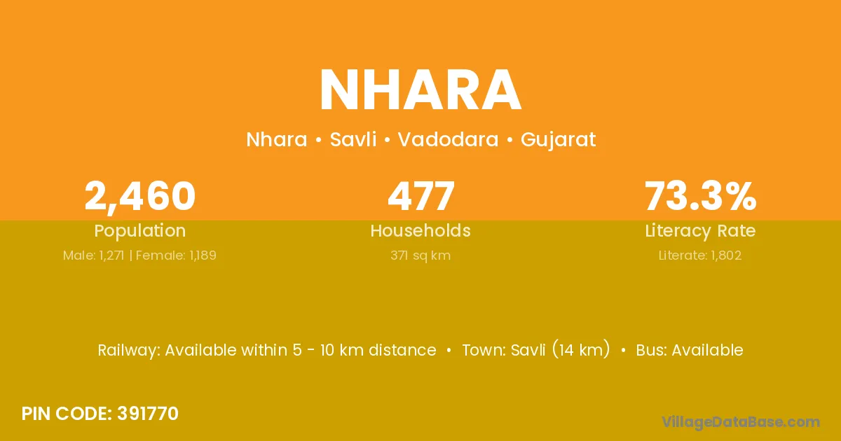 Savli (14 km) is the nearest town to Nhara village for major economic activities and is located approximately 14 km away.