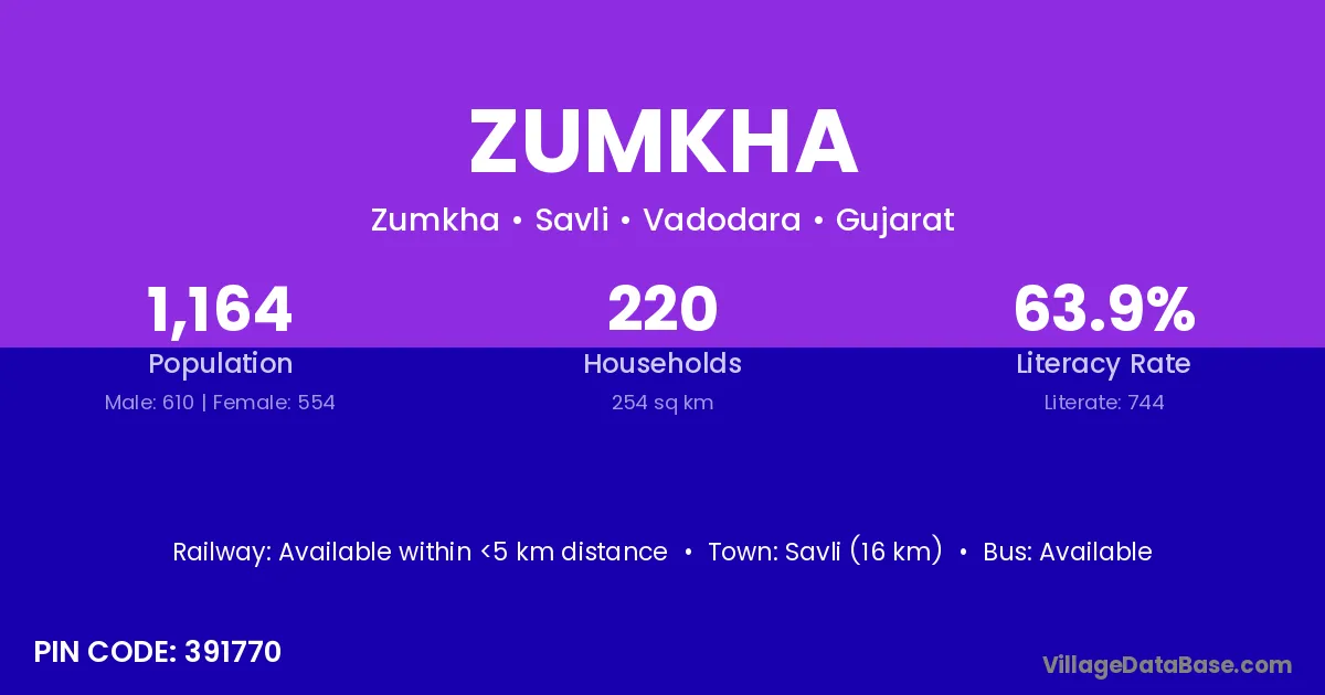 Savli (16 km) is the nearest town to Zumkha village for major economic activities and is located approximately 16 km away.
