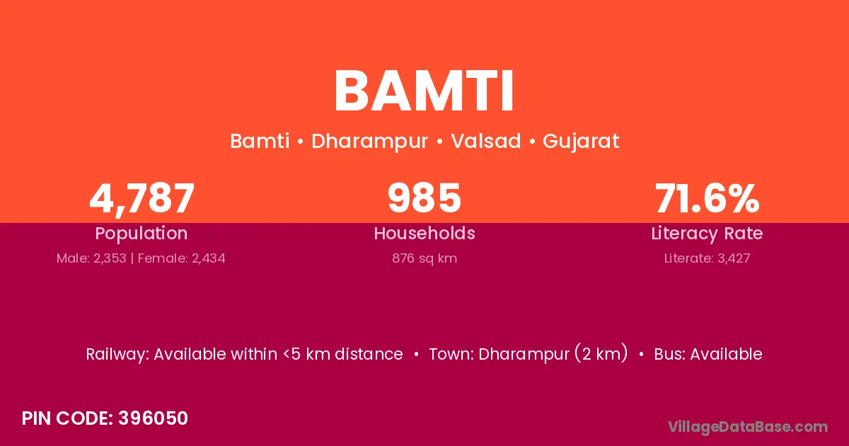 According to Census 2011 information, the village code of Bamti village is 396050.
