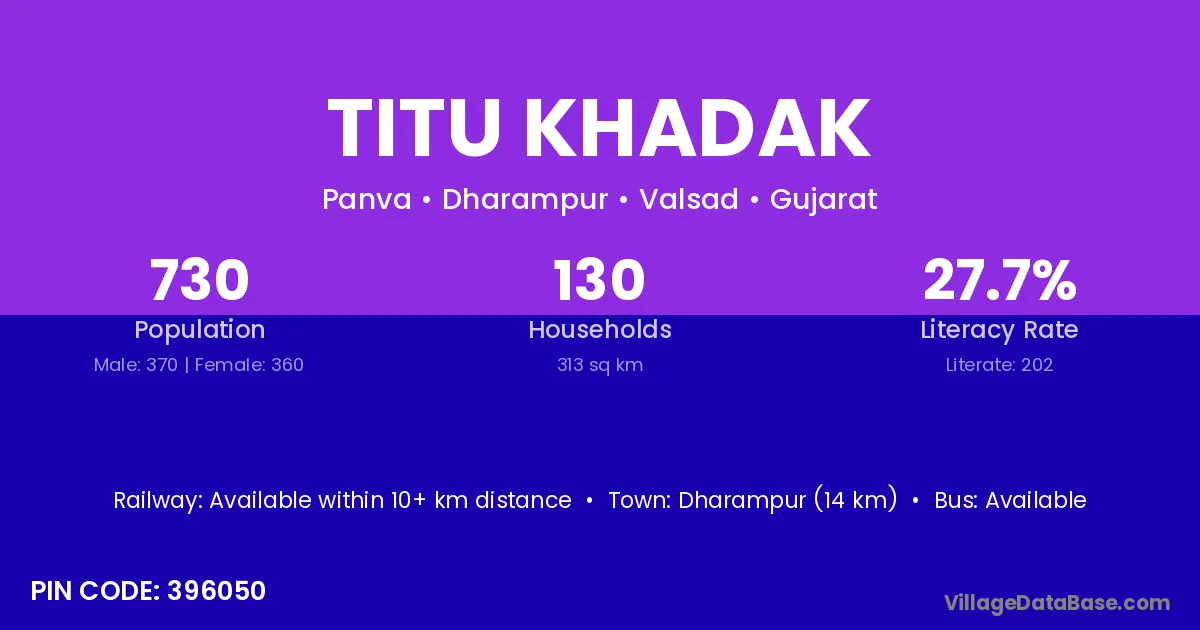 According to Census 2011 information, the village code of Titu Khadak village is 396050.