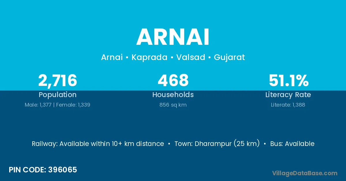 According to Census 2011 information, the village code of Arnai village is 396065.