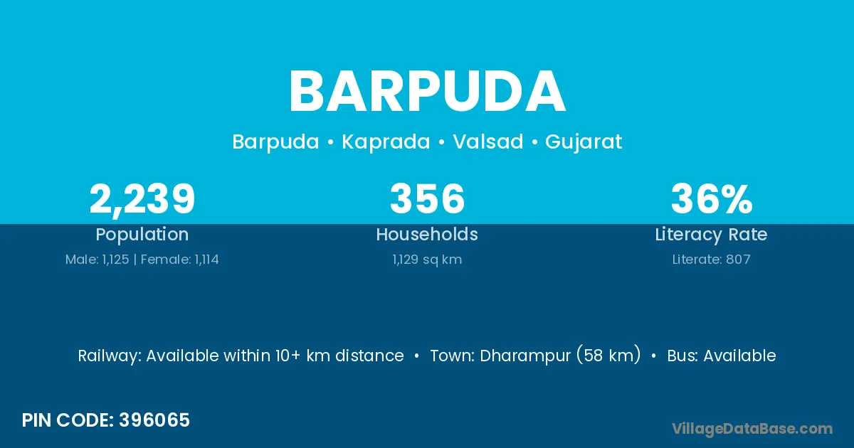 According to Census 2011 information, the village code of Barpuda village is 396065.
