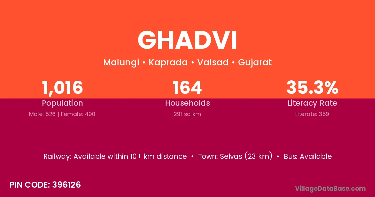 Ghadvi village has a total population of 1,016 people, of which 526 are males and 490 are females.