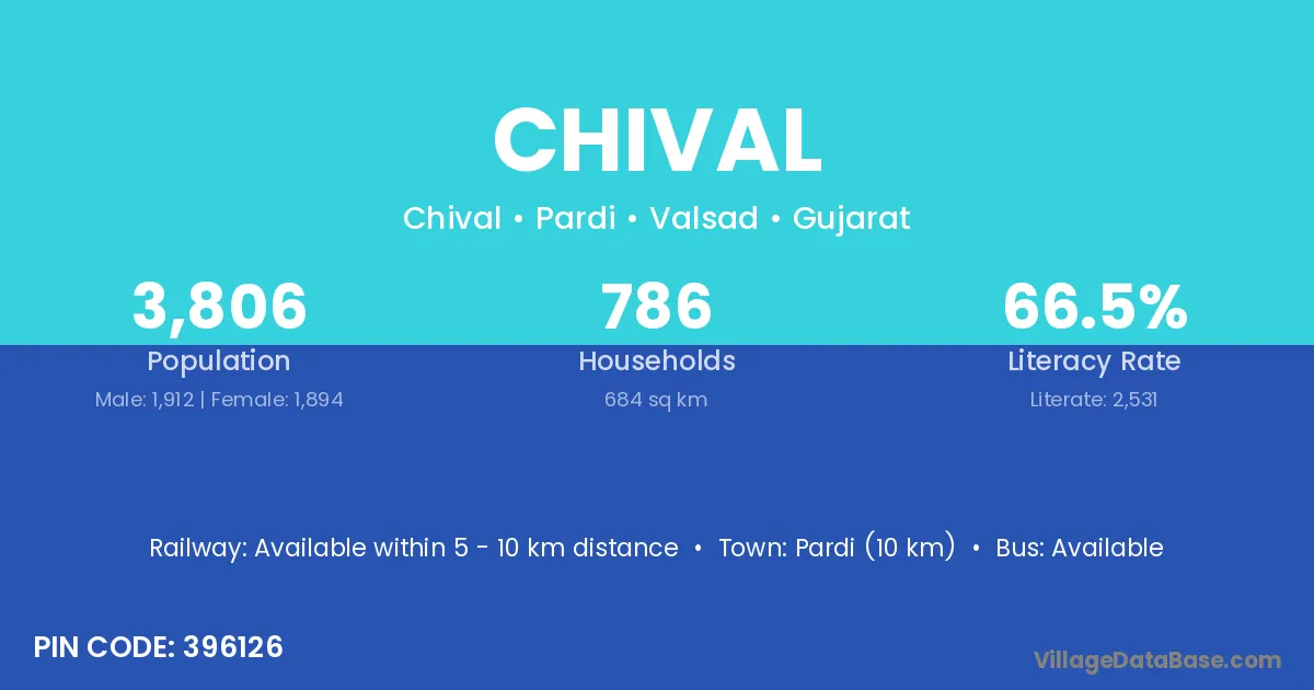 Pardi (10 km) is the nearest town to Chival village for major economic activities and is located approximately 10 km away.
