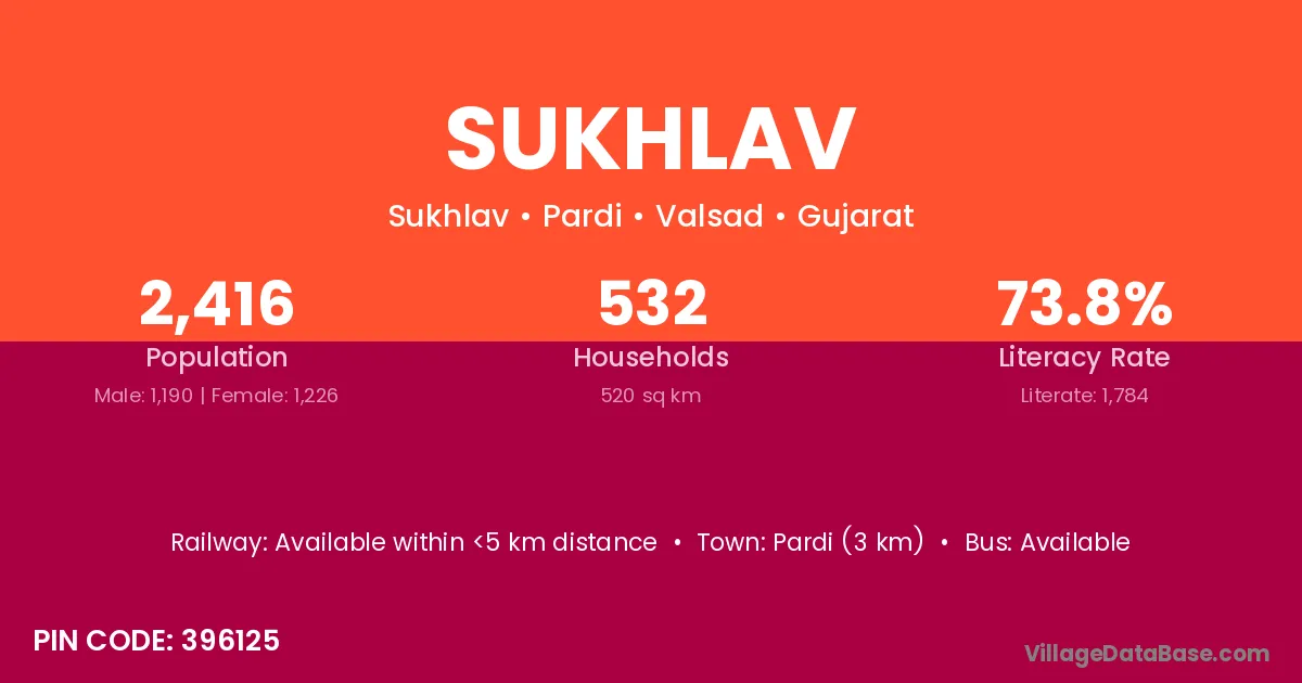 Pardi (3 km) is the nearest town to Sukhlav village for major economic activities and is located approximately 3 km away.