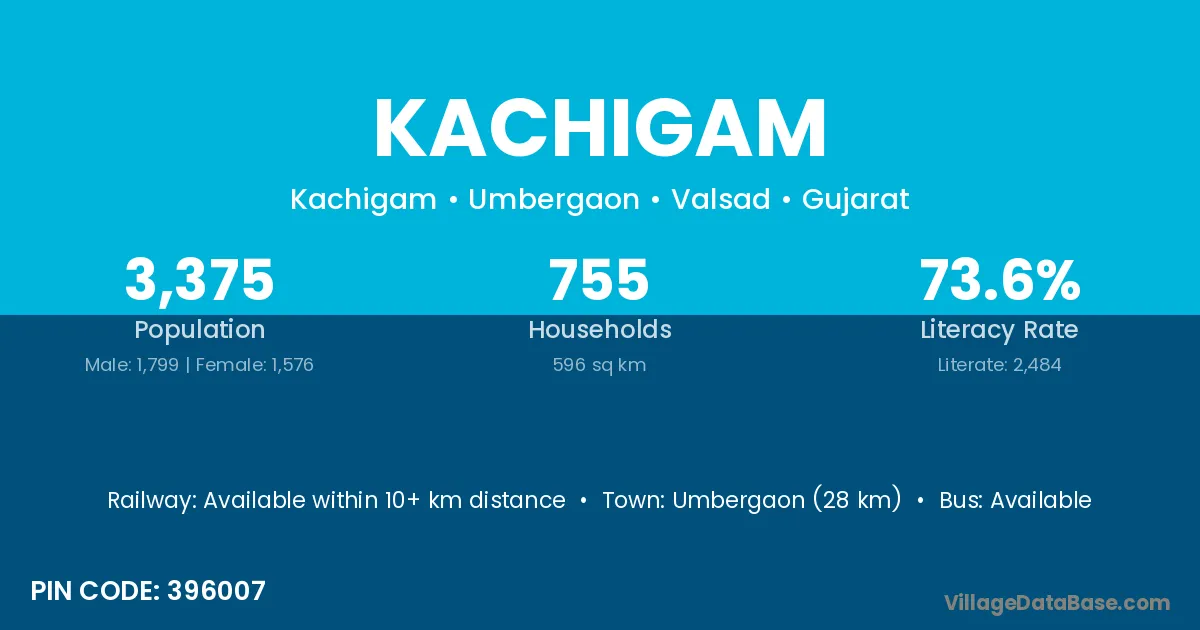 According to Census 2011 information, the village code of Kachigam village is 396007.