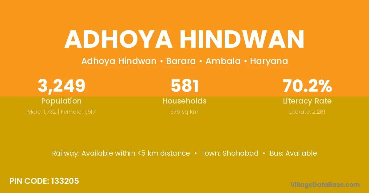 Shahabad is the nearest town to Adhoya Hindwan village for major economic activities