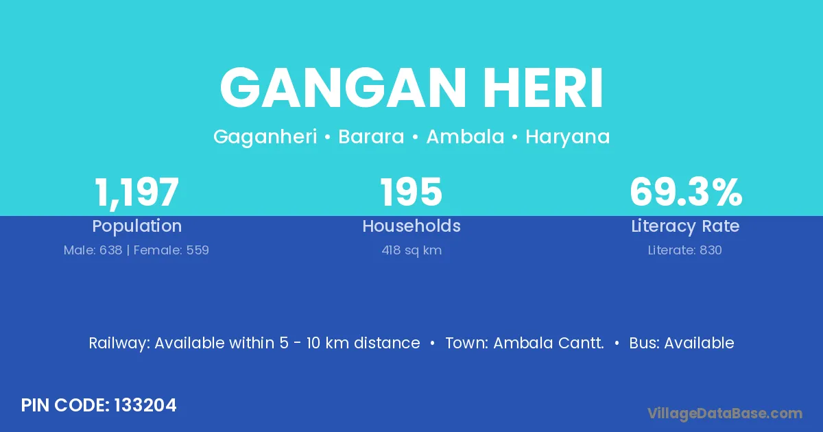 Ambala Cantt. is the nearest town to Gangan Heri village for major economic activities