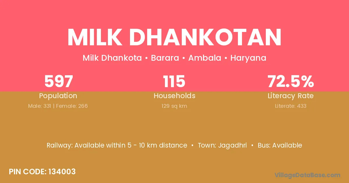 Milk Dhankotan village has a total population of 597 people, of which 331 are males and 266 are females.