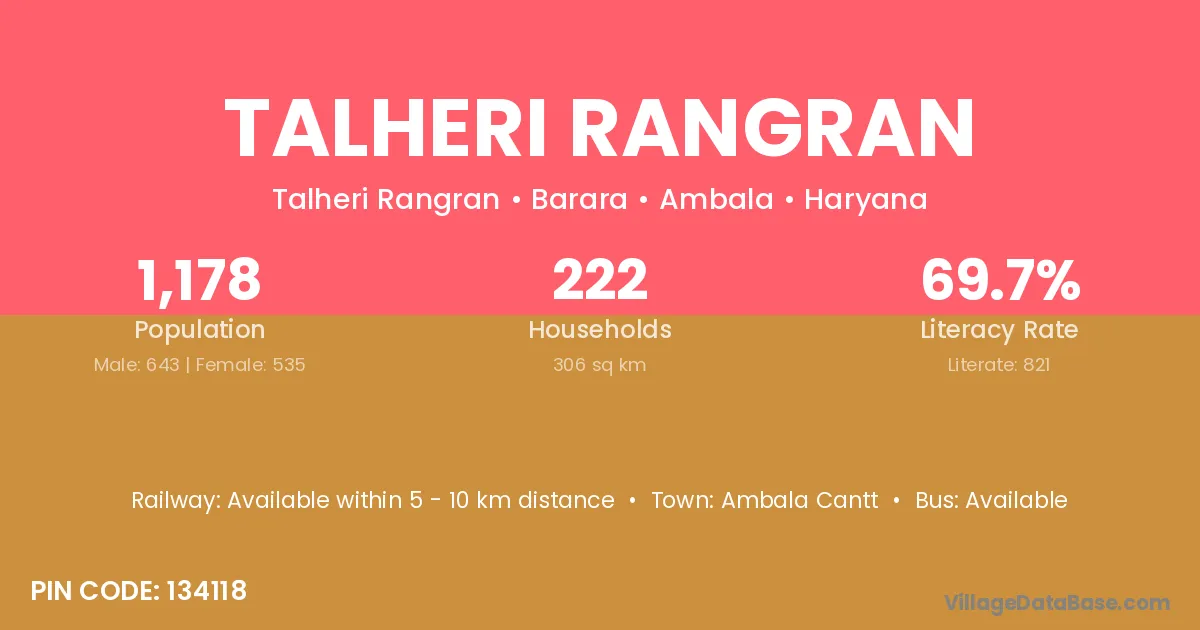 Ambala Cantt is the nearest town to Talheri Rangran village for major economic activities