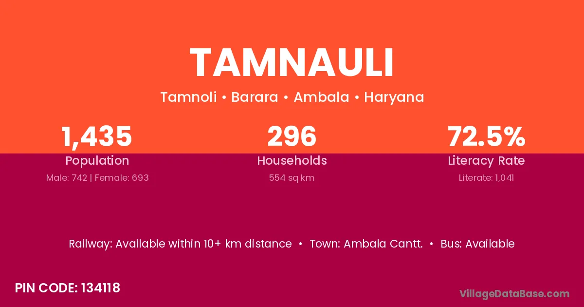 Ambala Cantt. is the nearest town to Tamnauli village for major economic activities