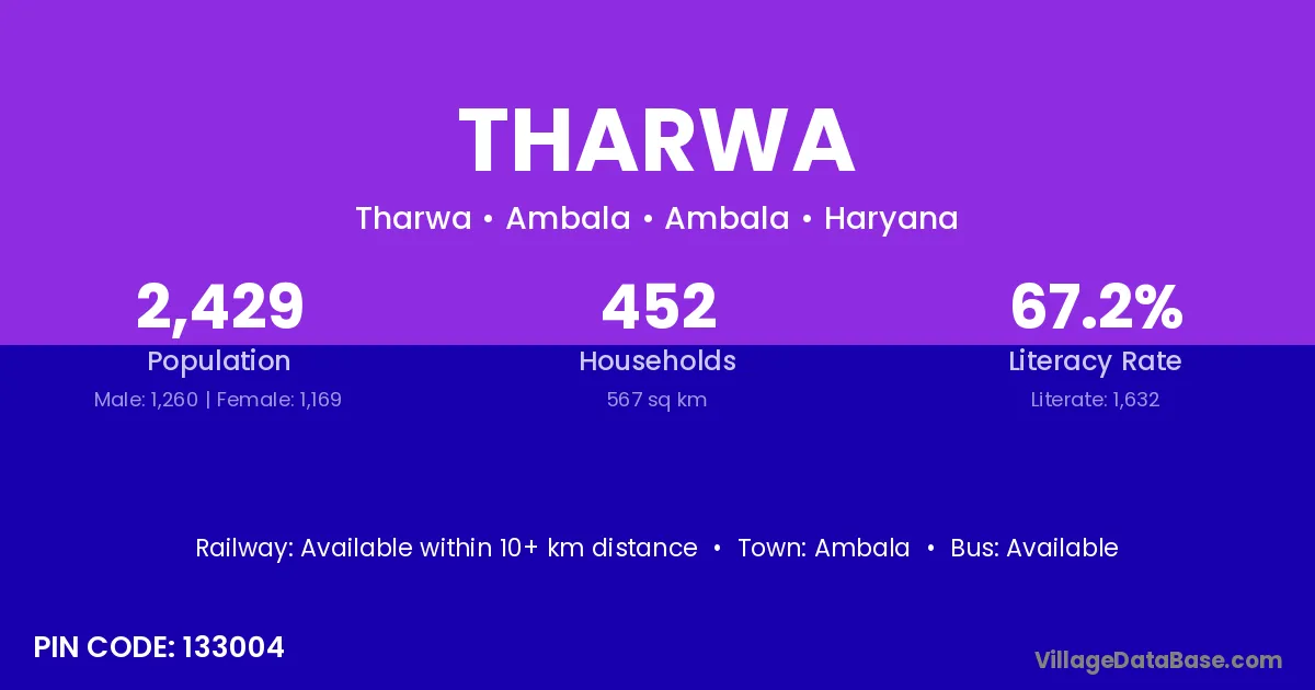 Ambala Cantt is the nearest town to Tharwa village for major economic activities