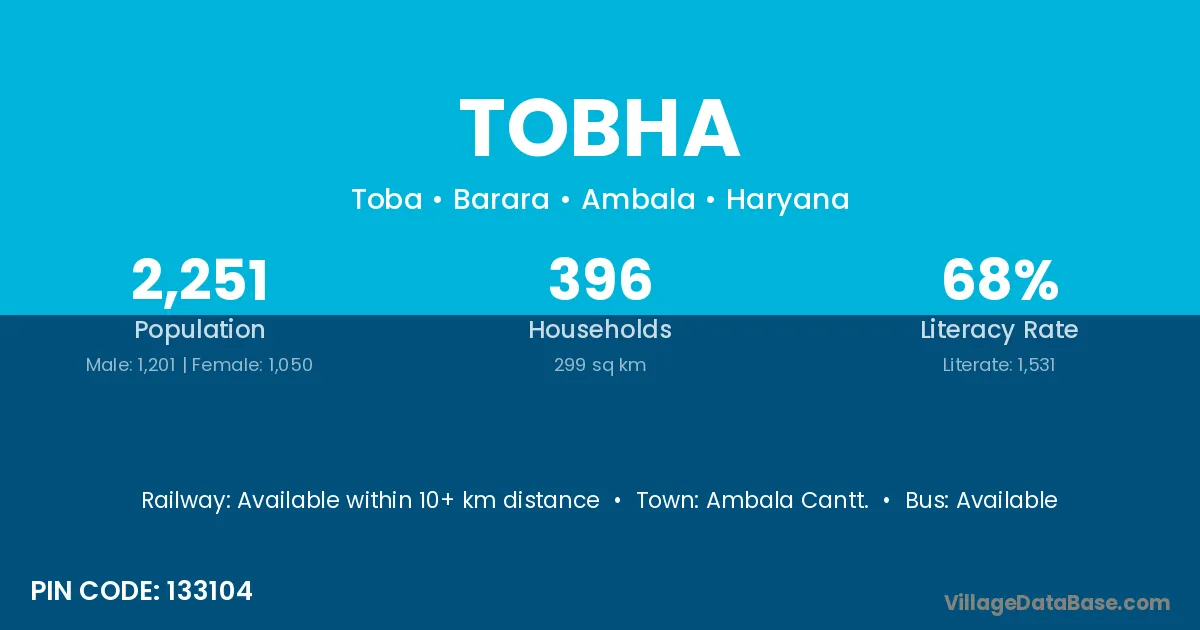 Ambala Cantt. is the nearest town to Tobha village for major economic activities