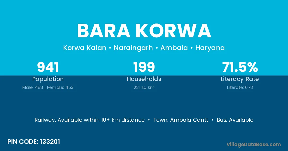 Ambala Cantt is the nearest town to Bara Korwa village for major economic activities