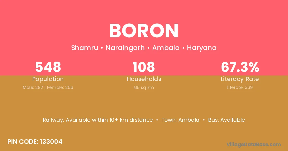 Boron village has a total population of 548 people, of which 292 are males and 256 are females.