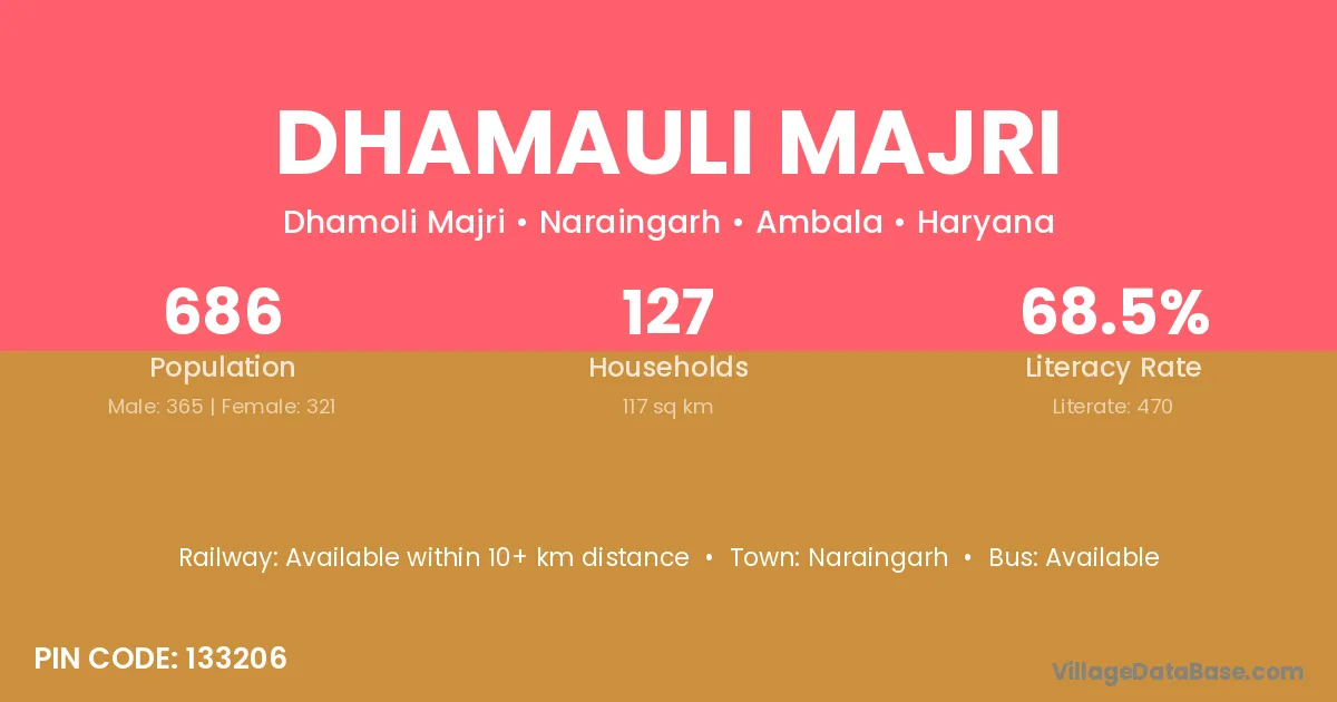 Dhamauli Majri village has a total population of 686 people, of which 365 are males and 321 are females.