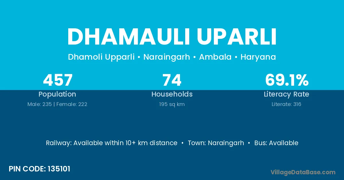 Dhamauli Uparli village has a total population of 457 people, of which 235 are males and 222 are females.