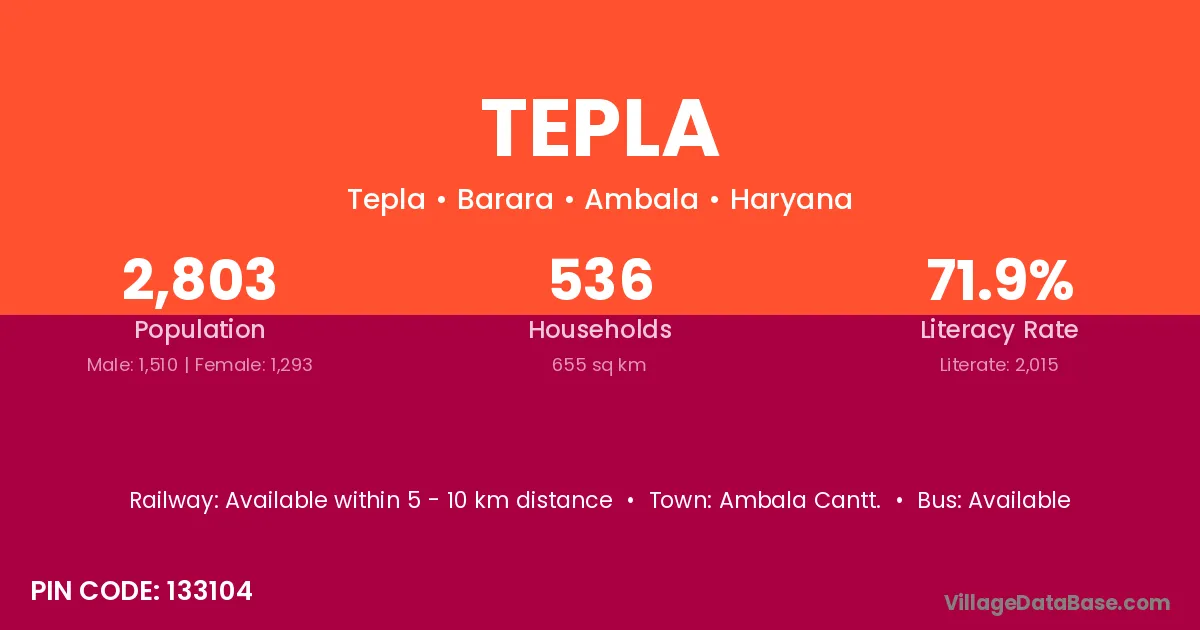 Tepla village is located in the Naraingarh Tehsil of the Ambala district in Haryana .