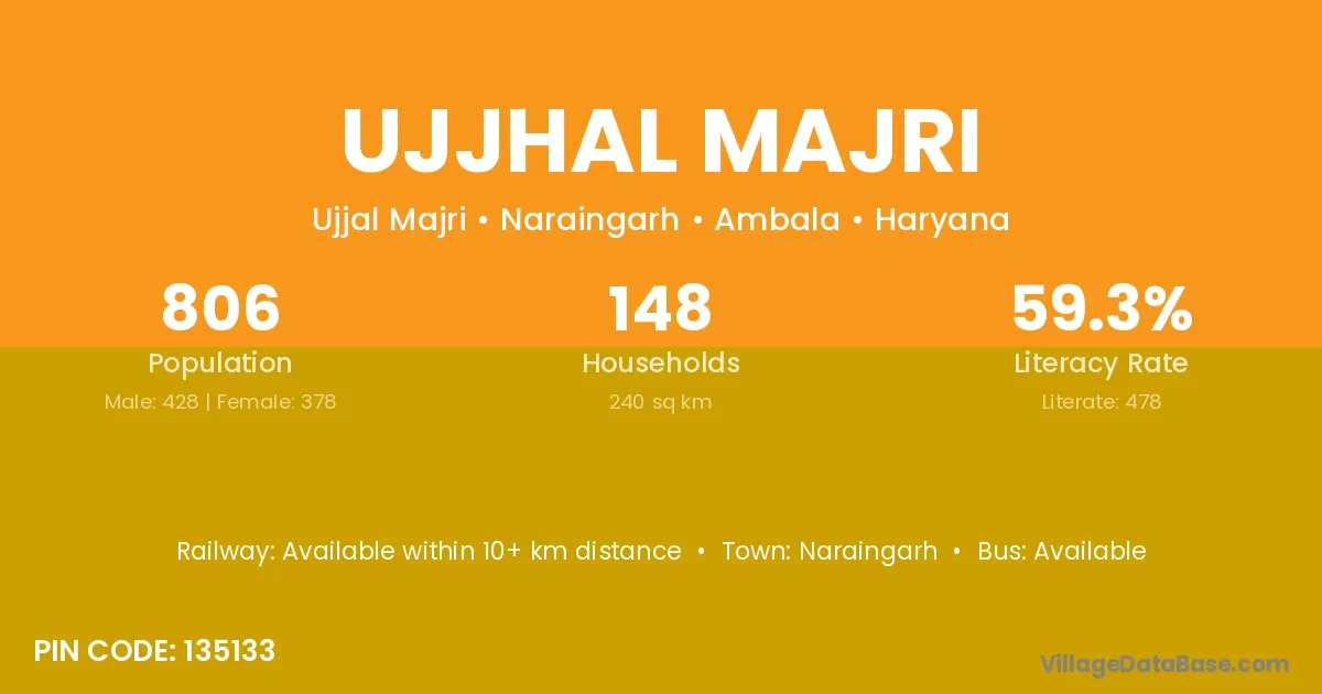 Ujjhal Majri village has a total population of 806 people, of which 428 are males and 378 are females.