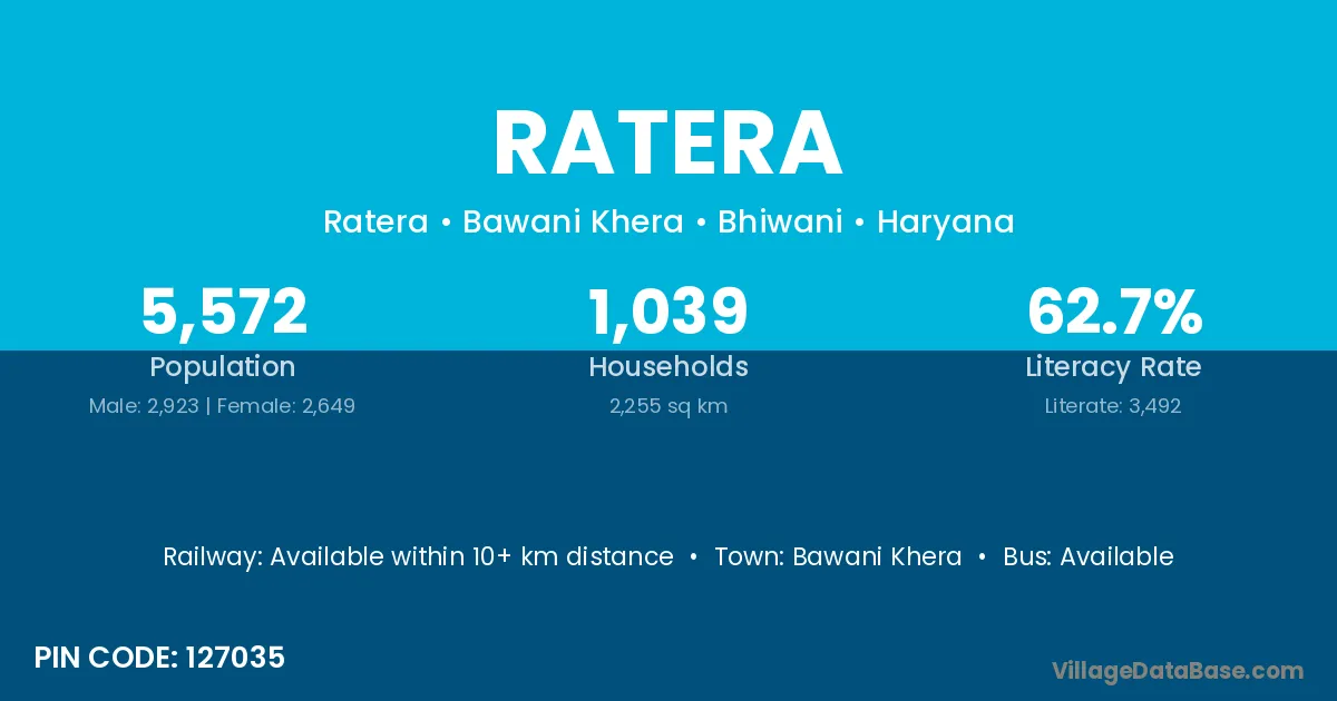 Bawani Khera is the nearest town to Ratera village for major economic activities