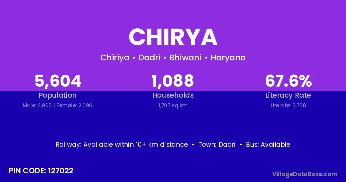 Dadri is the nearest town to Chirya village for major economic activities