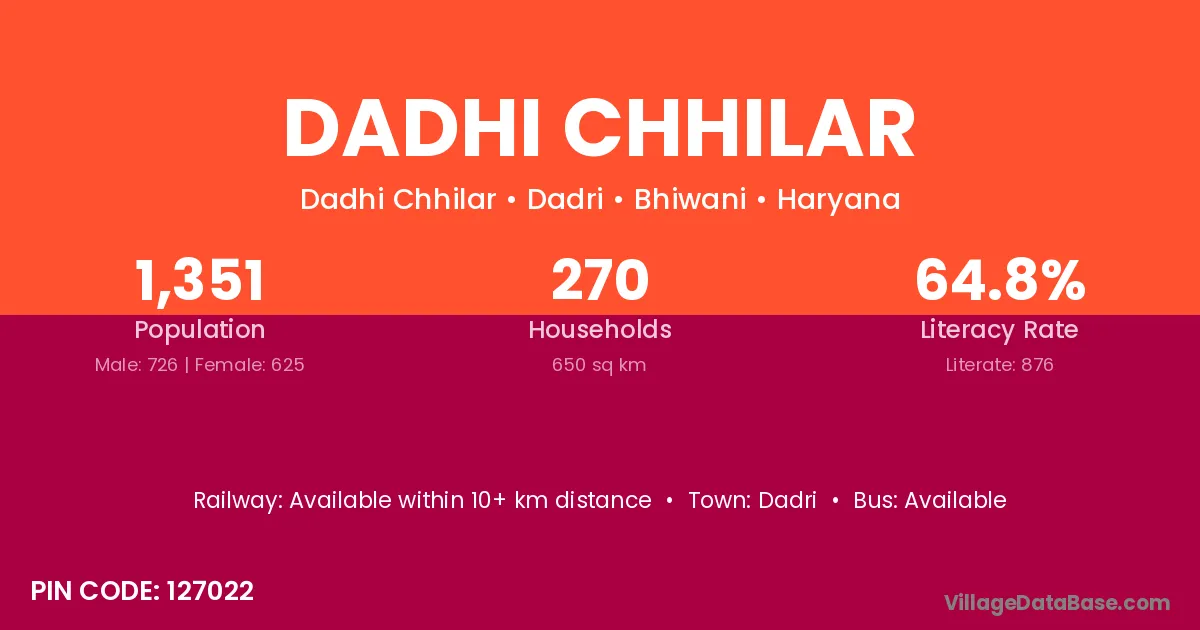 Dadhi Chhilar village has a total population of 1,351 people, of which 726 are males and 625 are females.