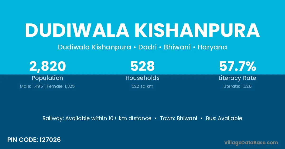 Bhiwani is the nearest town to Dudiwala Kishanpura village for major economic activities