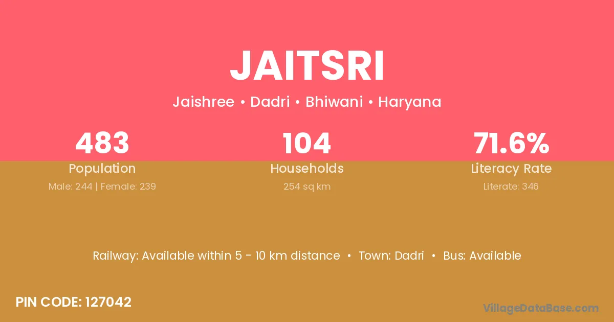 Jaitsri village has a total population of 483 people, of which 244 are males and 239 are females.
