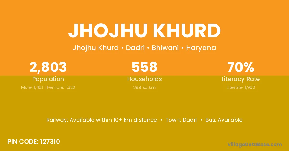 Dadri is the nearest town to Jhojhu Khurd village for major economic activities