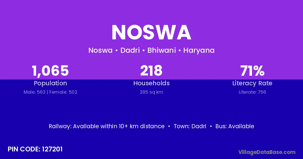 Noswa village has a total population of 1,065 people, of which 563 are males and 502 are females.