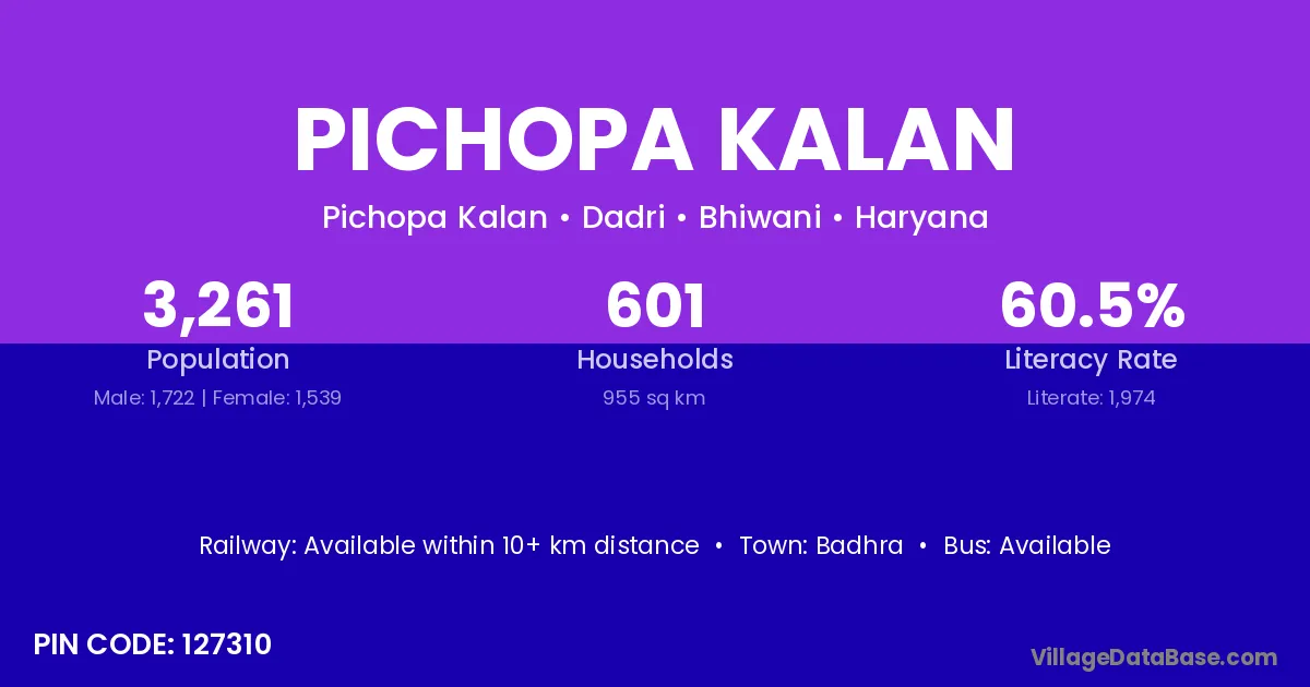 Badhra is the nearest town to Pichopa Kalan village for major economic activities