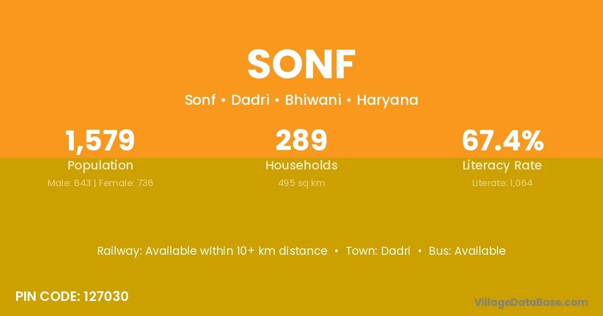 Sonf village has a total population of 1,579 people, of which 843 are males and 736 are females.