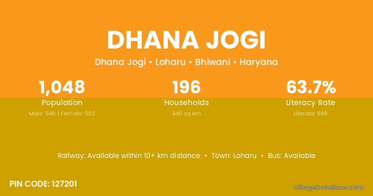 Dhana Jogi village has a total population of 1,048 people, of which 546 are males and 502 are females.