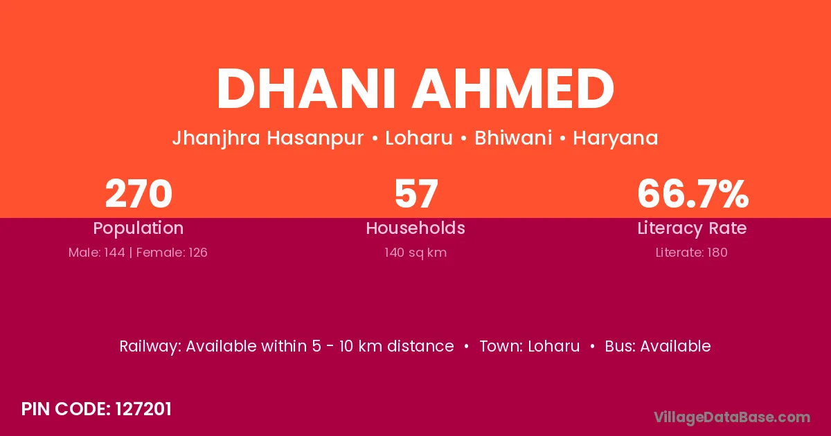 According to Census 2011 information, the village code of Dhani Ahmed village is 127201.
