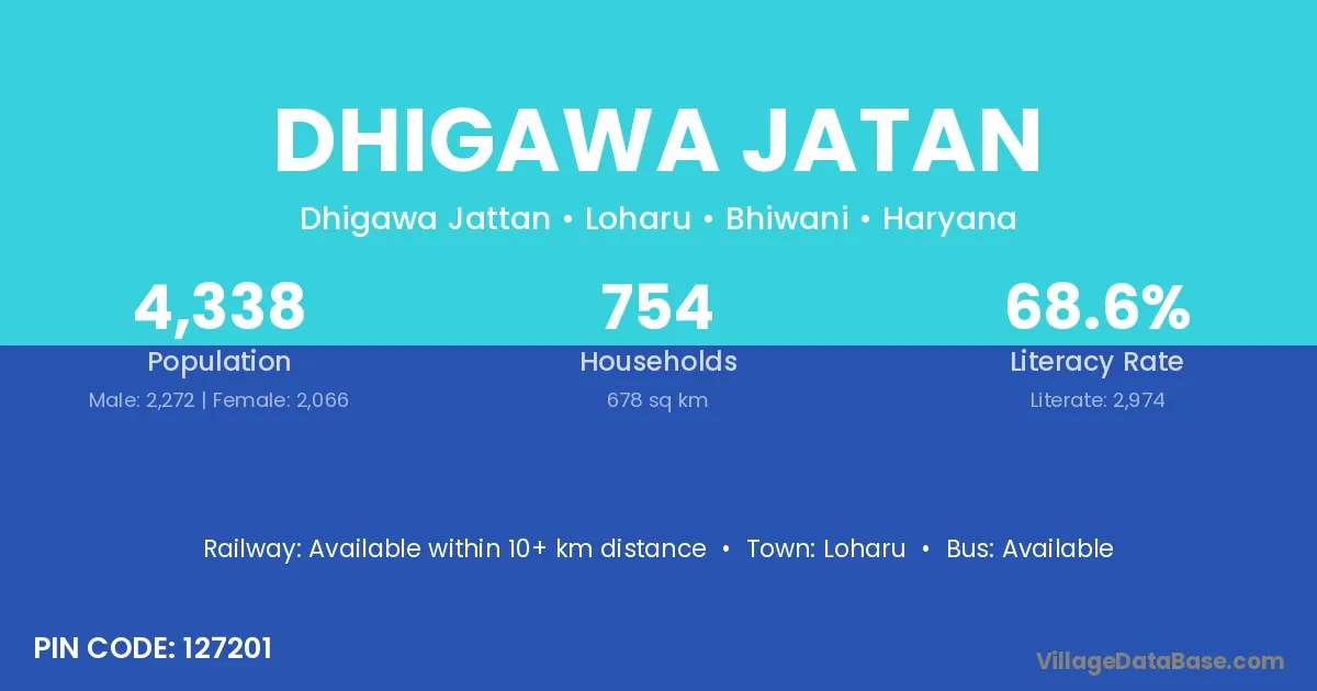 Dhigawa Jatan village has a total population of 4,338 people, of which 2,272 are males and 2,066 are females.