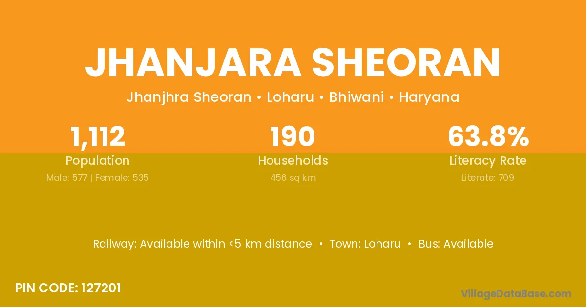 Loharu is the nearest town to Jhanjara Sheoran village for major economic activities