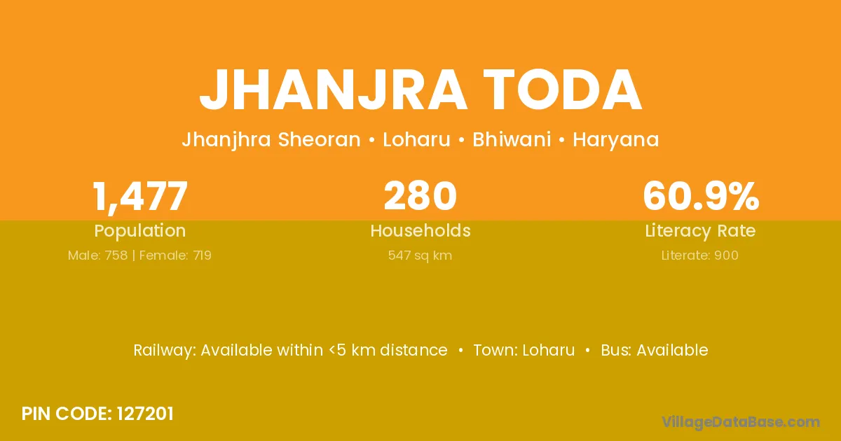 Loharu is the nearest town to Jhanjra Toda village for major economic activities