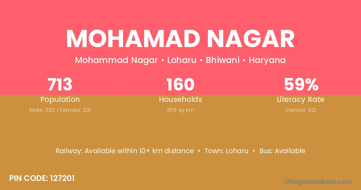 Mohamad Nagar village has a total population of 713 people, of which 382 are males and 331 are females.