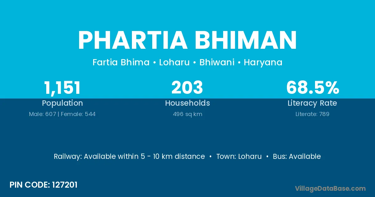 Phartia Bhiman village has a total population of 1,151 people, of which 607 are males and 544 are females.
