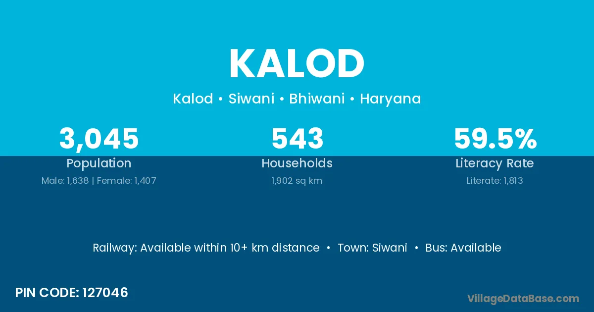 Kalod village has a total population of 3,045 people, of which 1,638 are males and 1,407 are females.