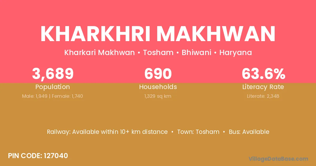 Tosham is the nearest town to Kharkhri Makhwan village for major economic activities