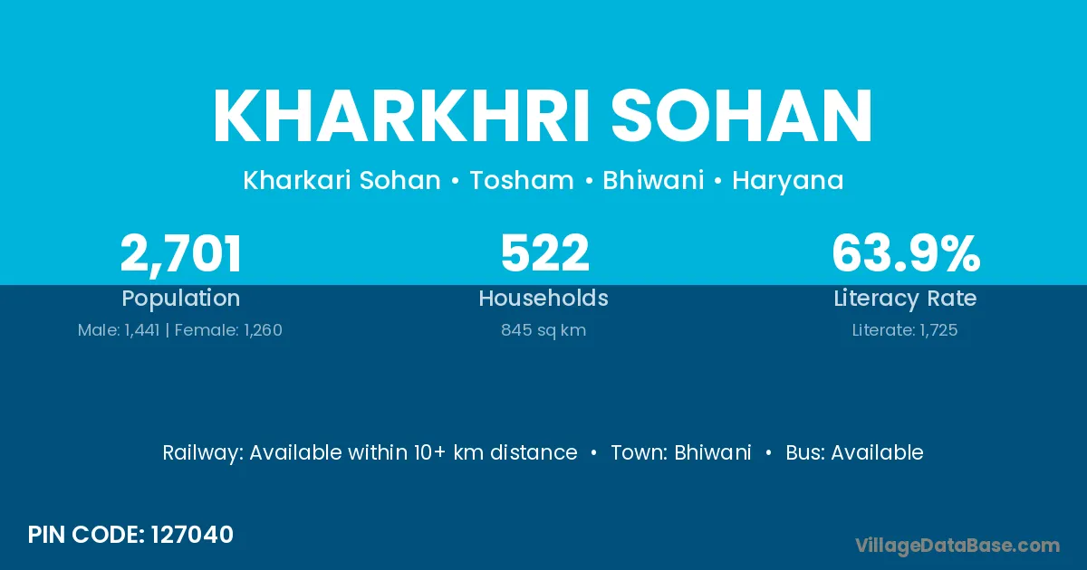 Kharkhri Sohan village has a total population of 2,701 people, of which 1,441 are males and 1,260 are females.