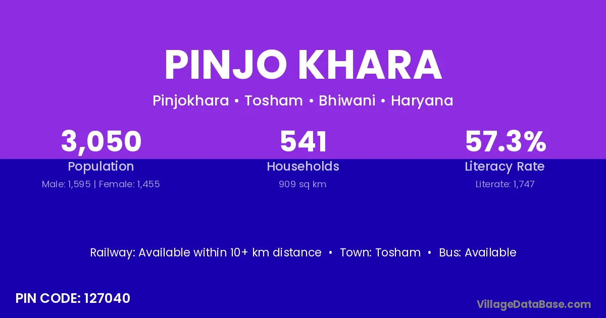 Pinjo Khara village has a total population of 3,050 people, of which 1,595 are males and 1,455 are females.