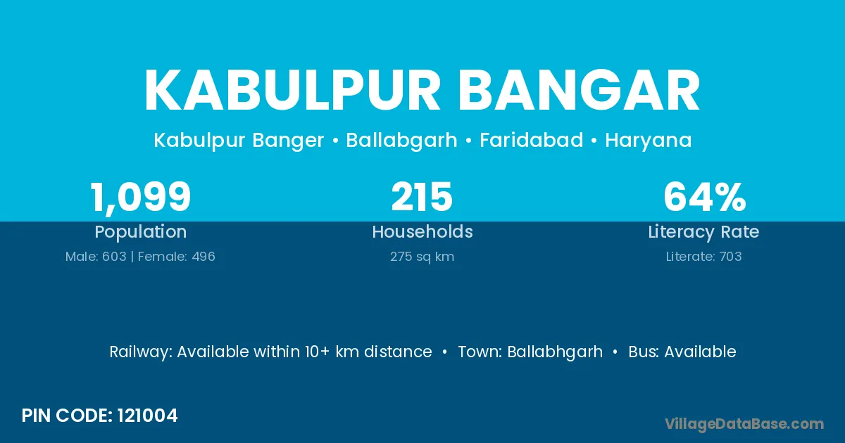 Ballabhgarh is the nearest town to Kabulpur Bangar village for major economic activities